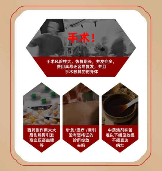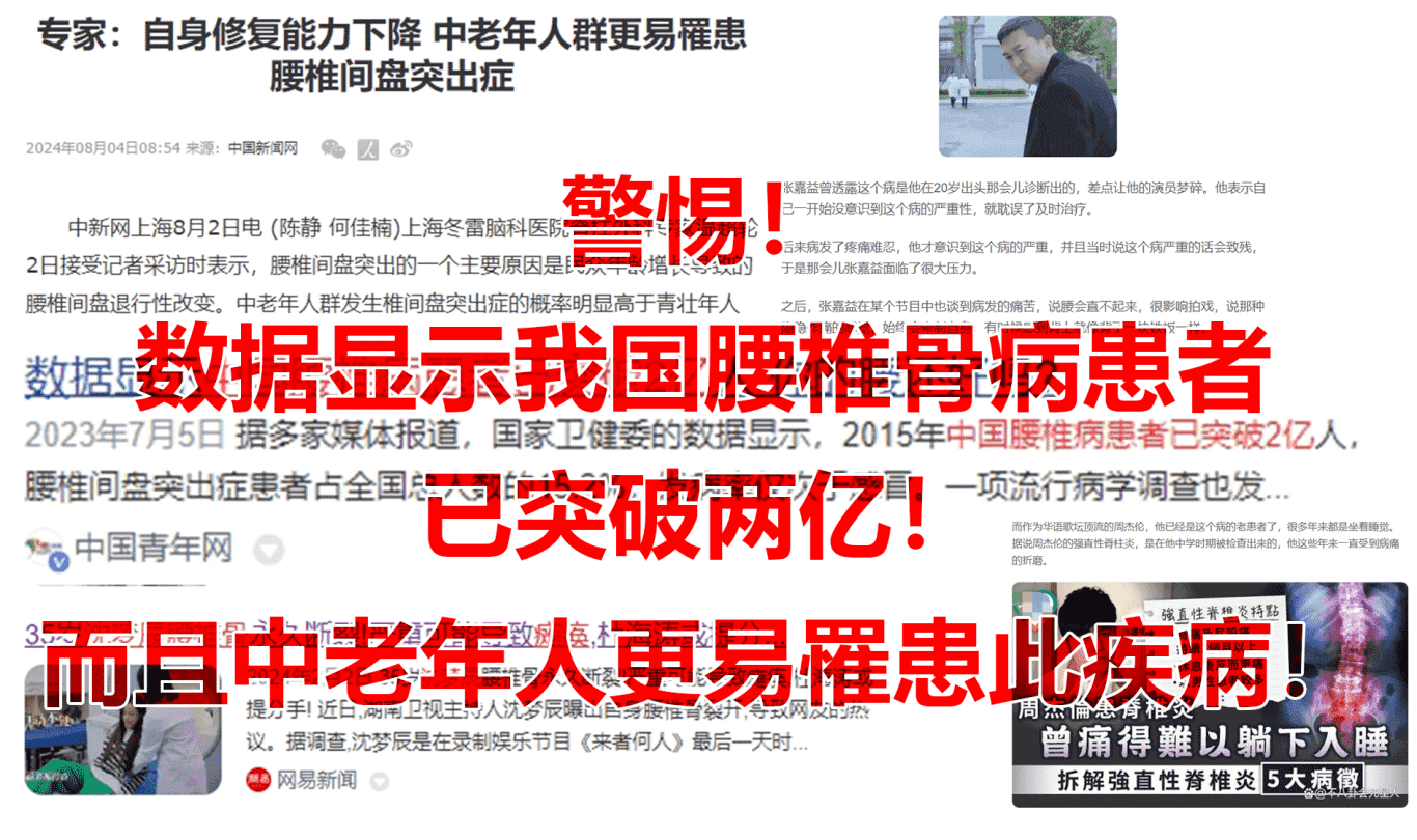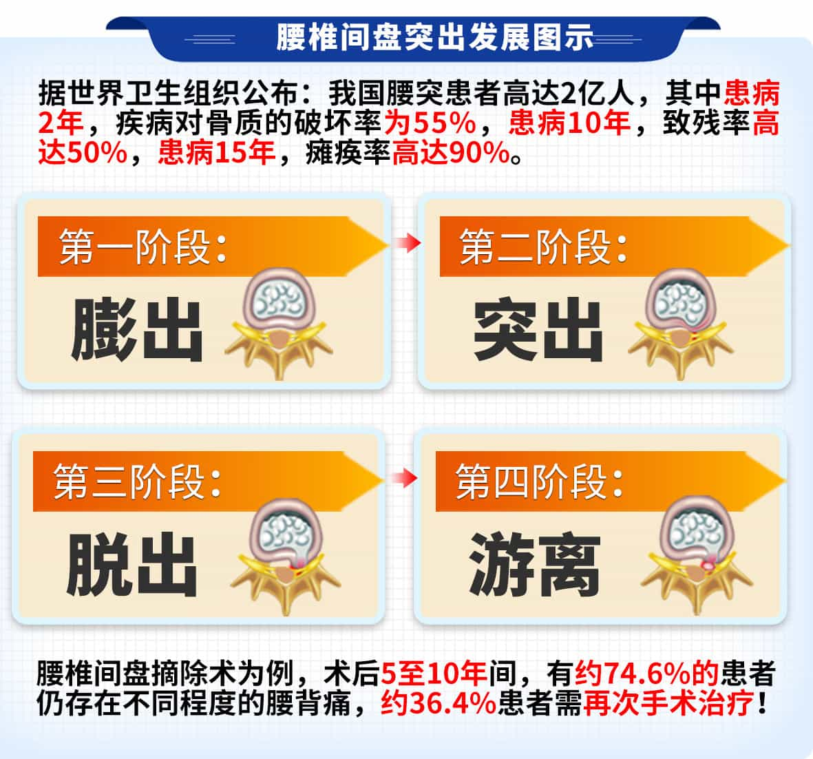 腰间盘突出、颈椎病、椎体肥大、椎管狭窄、骨质增生、骨刺、骨质疏松、强直性脊柱炎、风湿类风湿等骨关节疼痛的患者长期得不到好的治疗,最后的解决方法只能开刀、或者瘫痪在床?